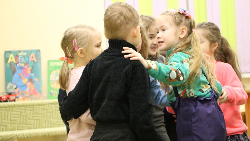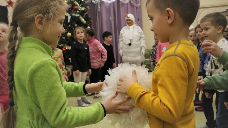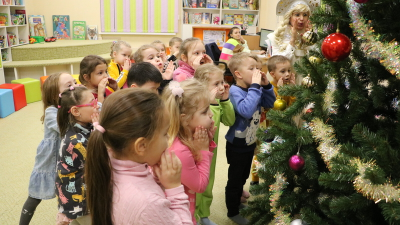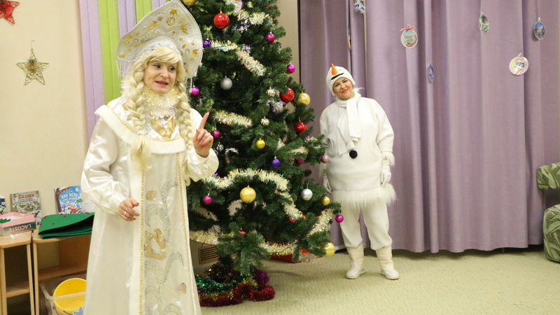 В гости к ребятам пришёл озорной Снеговик. Вместе с ним на волшебном паровозике дети отправились в сказочный зимний лес. Там их ждали развлечения: игры в снежки и встреча со Снегурочкой. Детки с помощью волшебных слов и движений помогли Снегурочке зажигать огоньки на говорящей Ёлочке. Команды Снеговика и Снегурочки на скорость наряжали маленькие ёлочки, участвовали в конкурсах и танцевали.