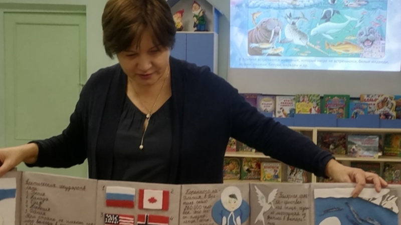 Дошкольники вместе с библиотекарем выясняли, какие профессии необходимы в Арктике и почему там могут работать только самые сильные, смелые и выносливые люди.