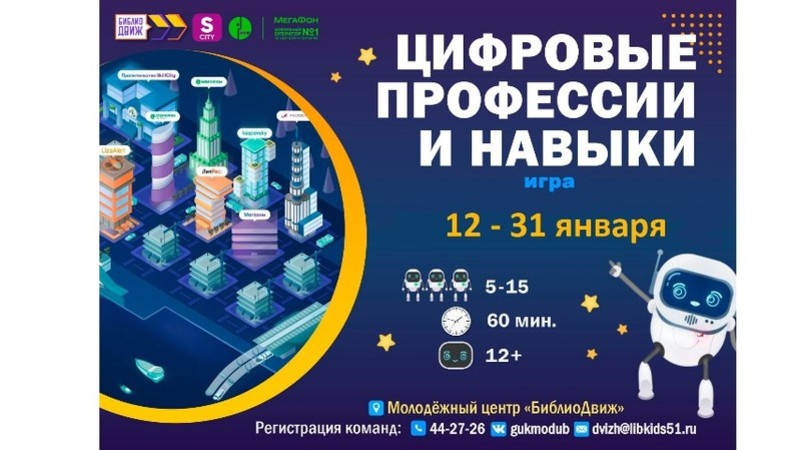 С 12 по 31 января молодежный центр «БиблиоДвиж» приглашает принять участие в интеллектуальной игре для тех, кто любит узнавать новое «Цифровые профессии и навыки»