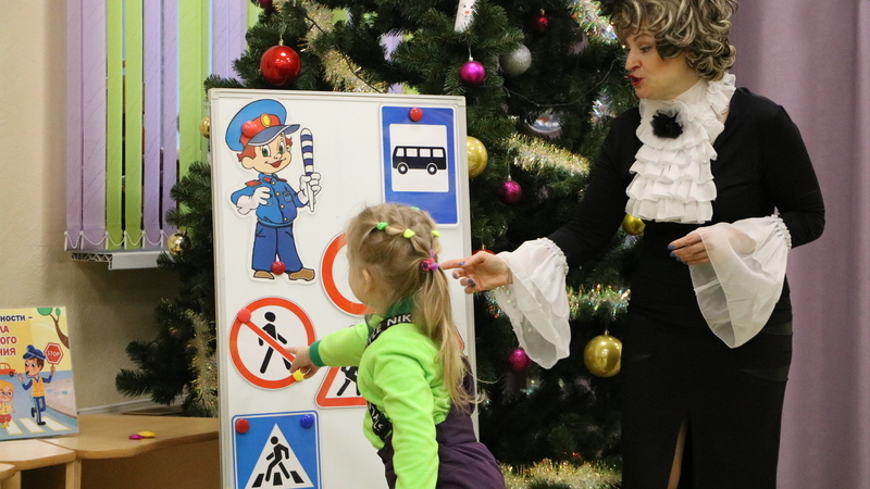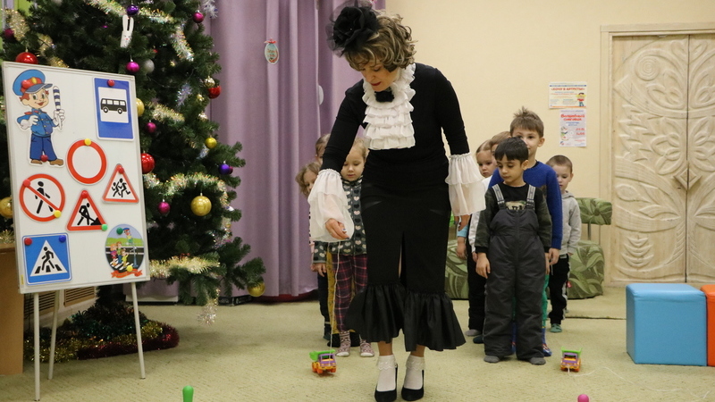 Вместе с ребятами осваивала дорожную азбуку и старуха Шапокляк. Она загадывала загадки и проводила командную эстафету с игрушечными грузовиками.