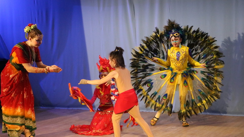 Юные артисты театральной студии подарили зрителям чудесный праздник: яркий, музыкальный спектакль с роскошными костюмами и прекрасно исполненными сценами из индийской жизни.