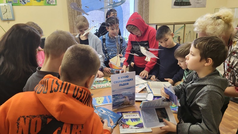 Многие дети пришли вместе с родителями. Малыши и взрослые увлеченно искали ответы на разнообразные вопросы, касающиеся природы и животного мира Арктики, в представленных на выставке книгах.