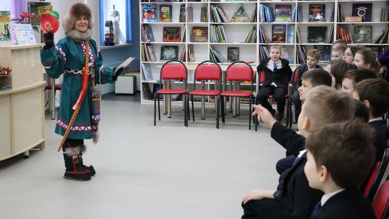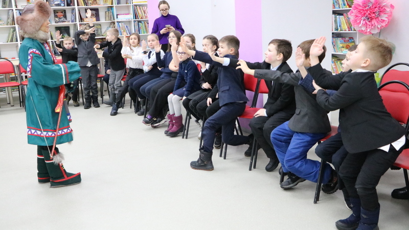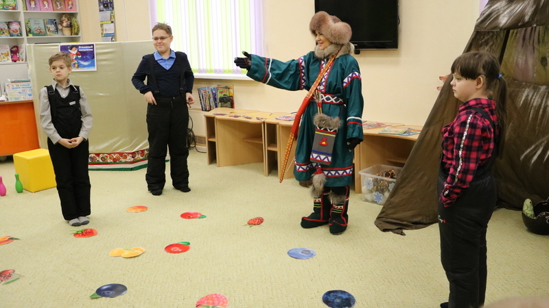 Вначале мероприятия библиотекарь прочитала отрывок из замечательной сказки «Сампо-Лопаренок», ребята узнали о коренных жителях Кольского полуострова и других северных стран. Затем появился костюмированный герой Сампо-Лопарёнок и театральная кукла-маска горного короля – великана Хийси.