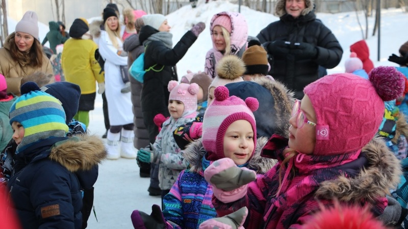 Танец с козлом, ладошки-пятнашки, игра «Зайцы и Лиса» развеселили детей и взрослых и помогли собрать выкуп, но вместо долгожданной Весны на празднике появилась Кикимора Болотная. Вопреки ожиданиям, сказочный персонаж детей не испугал, а весело с ними поиграл. Гости праздника соревновались в перетягивании каната, метании валенок на дальность, катались на карусели и провели веселую блинную эстафету.