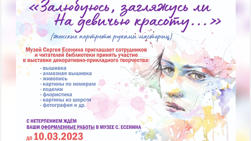 Принести оформленные работы можно в отдел художественной литературы или в Музей С.А. Есенина до 10 марта.