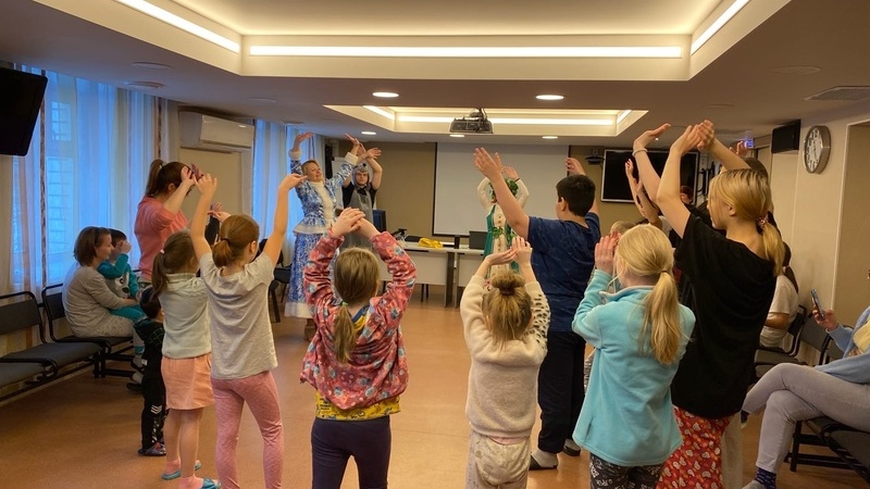 В первый мартовский денек для ребят был устроен весенний праздник. Развеселить детей и скрасить больничные будни постарались Скоморох, Волк и Зимушка. Очень уж не хотелось Зиме сдавать свои позиции и уступать место Весне. Но с помощью детского смеха, веселья и магического посоха Деда Мороза удалось пробудить ото сна красавицу Весну.