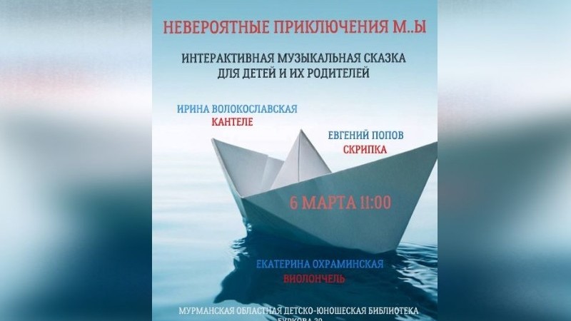 Программу проведут артисты Мурманской областной филармонии: Ирина Волокославская (кантеле), Евгений Попов (скрипка) и Екатерина Охраминская (виолончель). Прозвучат популярные пьесы Петра Чайковского из «Детского альбома» и любимые песни.