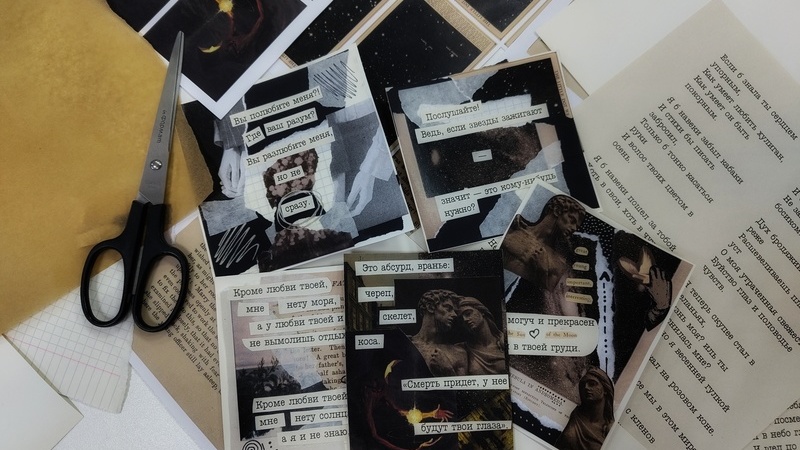 На мастер-классе по литературному скрапбукингу все желающие смогли создать эстетичные коллажи, используя различные виды бумаги, картинки, а также стихотворные строчки.