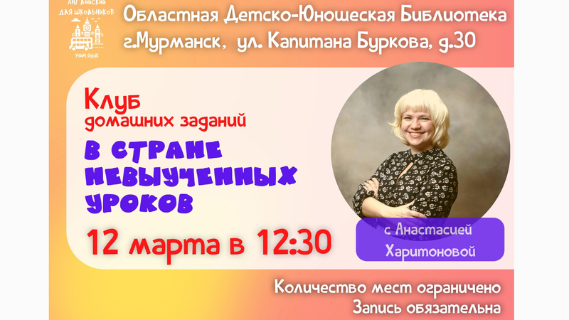 Первая встреча в клубе домашних заданий по английскому языку состоится в молодежном центре «БиблиоДвиж» 12 марта в 12:30.