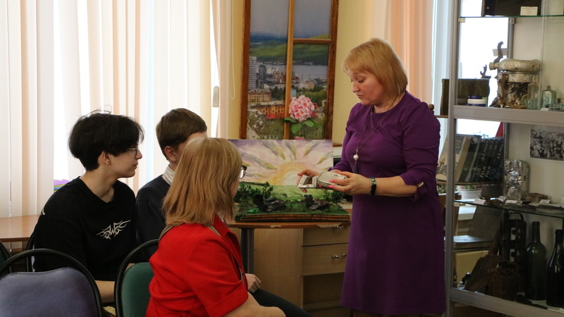 Заведующая центром краеведения и страноведения познакомила собравшихся с выставкой «Эхо войны», которая второй год работает в центре и пользуется огромной популярностью у подрастающего поколения.