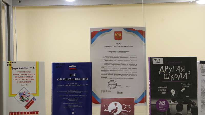 Экспозиция будет действовать в течение всего 2023 года и послужит информационной поддержкой для мероприятий, проводимых в рамках Года педагога и наставника.
