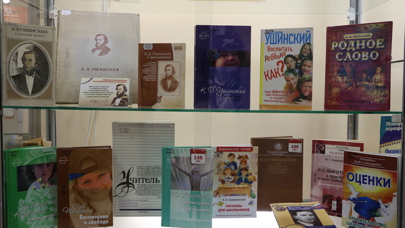 На выставке представлены материалы, отражающие политику государства в области развития творческого и профессионального потенциала педагога; нормативно-правовые документы, принятые на государственном уровне; литература, знакомящая с профессией педагога, выдающимися деятелями отечественной педагогики, определившими ее современное развитие: К. Д. Ушинским, Л. С. Выготским, А. С. Макаренко, В. А. Сухомлинским, С. Л. Соловейчиком и др., а также с деятельностью педагогов-новаторов и традициями педагогического наставничества.