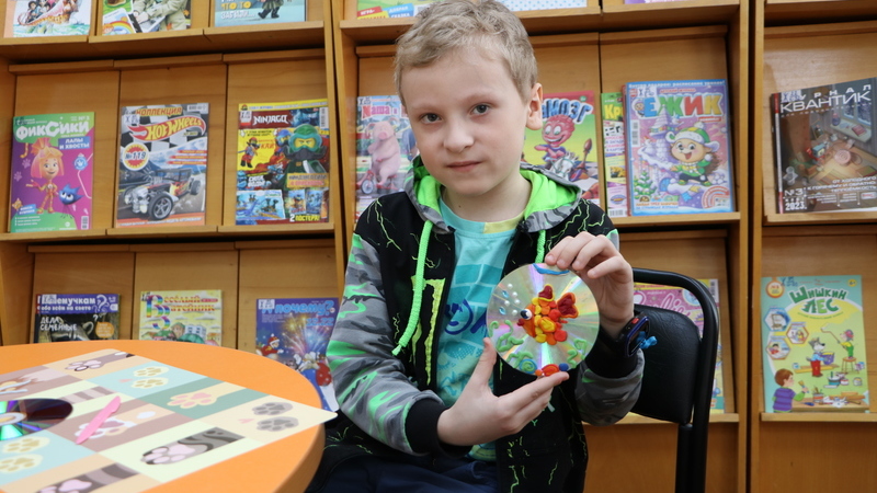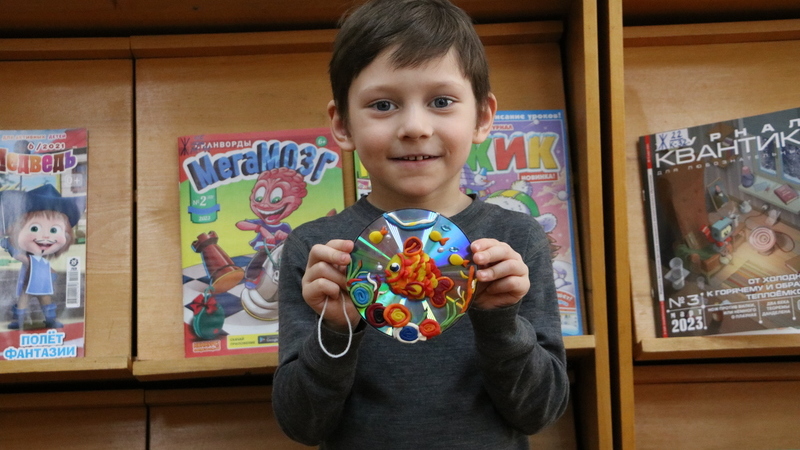 Во время мастер-класса «Аквариум из CD» ребята узнали интересные факты о разных обитателях аквариума и пробовали угадать рыбку по ее описанию. Под руководством библиотекаря юные мастера слепили из пластилина золотую рыбку, а также украсили свою поделку удивительными разноцветную водорослями и яркими камушками.