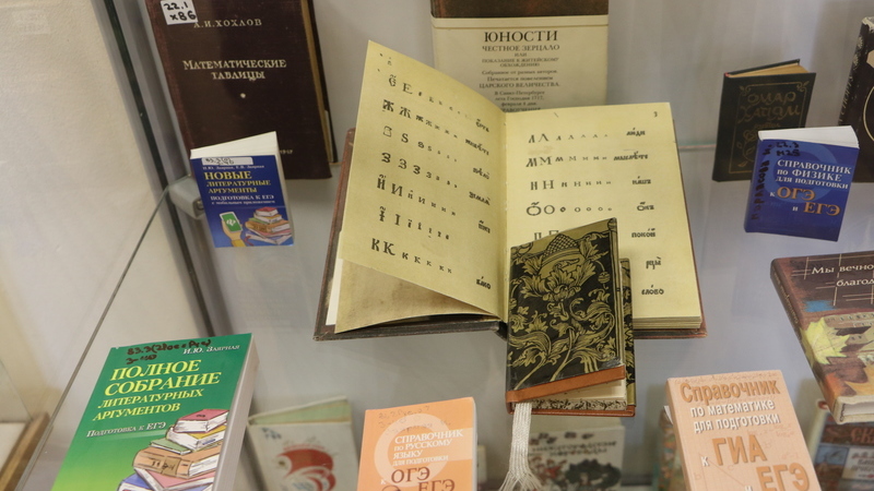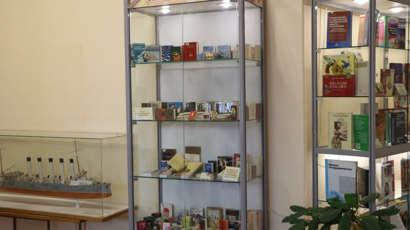 В выставочной витрине размещены книги из фонда областной детско-юношеской библиотеки, а также из личной коллекции Галины Васильевны, заведующей отделом информационно-библиографической работы и педагогического общения.