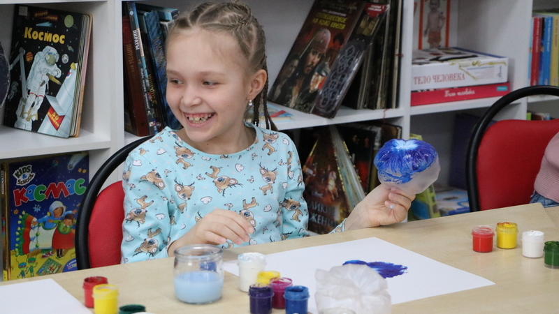 Субботним морозным днем в библиотеке было тепло, уютно и ярко на занятии в мастерской чудес Мэри Поппинс. Юные читатели и их родители с удовольствием рисовали цветы необычным способом, используя яркие оттиски вместо кистей. Ребята фантазировали, творили, веселились. Каждая из работ получилась яркой и индивидуальной.