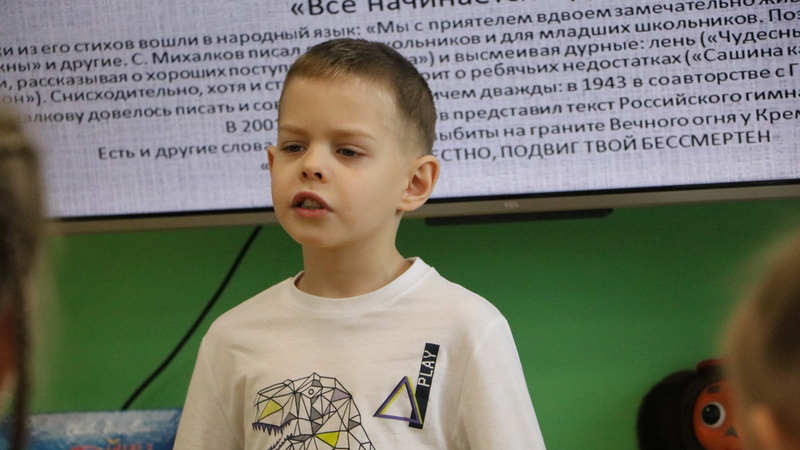 Затем, перевоплотившись в героев стихов и сказок С. Михалкова, ребята продолжили играть и участвовать в конкурсах: превращались, как дядя Стёпа, в гномиков и великанов и в светофор. Убедились, что у всех температура – 36,6, сбегали в аптеку за «чудесной таблеткой» от лени; посоревновались в ловкости, как котята из считалочки; попытались сдуть домик, как волк из сказки про трех поросят. Изобразили прекрасный пейзаж из стихотворения «Рисунок». Порадовались тому, что «уроки отменились», и наступил «праздник непослушания». И с удовольствием изготовили закладку для своей любимой книги!