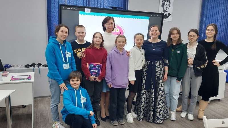 Более семидесяти школьников пришли в Центральную детскую библиотеку имени С. Михалкова. Они познакомились с автором, ее книгами, активно отвечали на вопросы космической викторины, которую провела писательница.