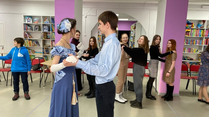 Продолжился вечер танцевальным мастер-классом, организованным студией исторических танцев «Шатлен». Гости разучили танцевальные движения под руководством Анастасии Цветковой и с огромным удовольствием исполнили вальс на музыку Чайковского и другие танцы.