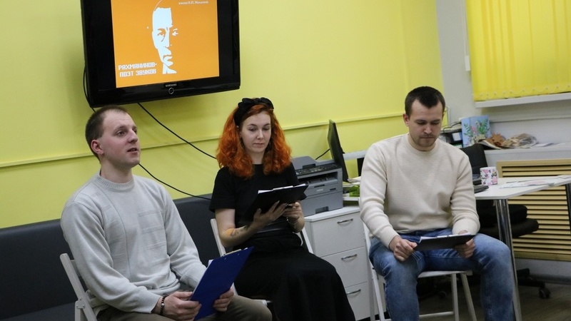 Участники встречи послушали пронзительные стихи Геннадия Самошина «Рахманинов» в исполнении волонтеров и сотрудников библиотеки под музыку великого музыканта.