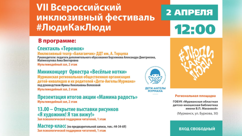 Мурманская областная детско-юношеская библиотека имени В.П. Махаевой вошла в состав участников VII Всероссийского инклюзивного фестиваля #ЛюдиКакЛюди.