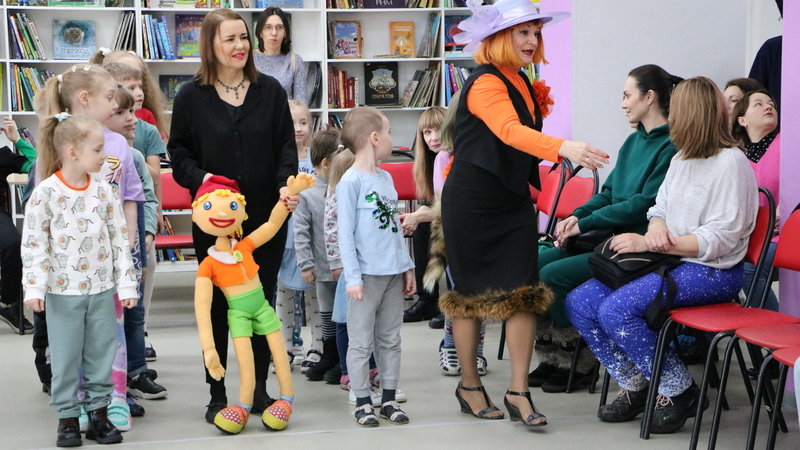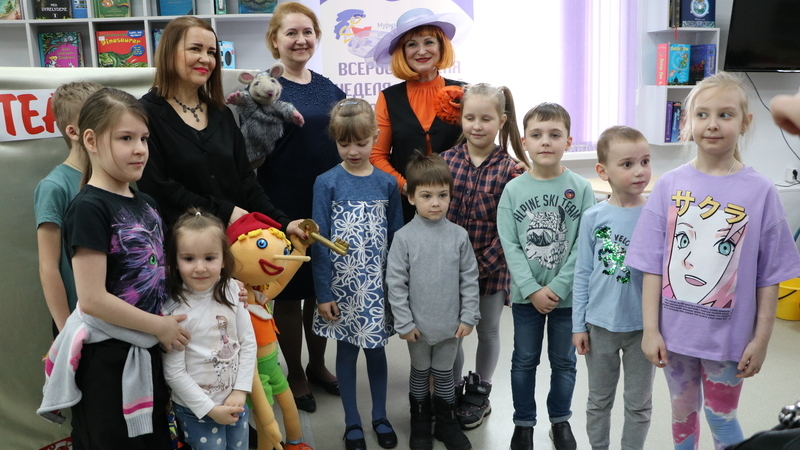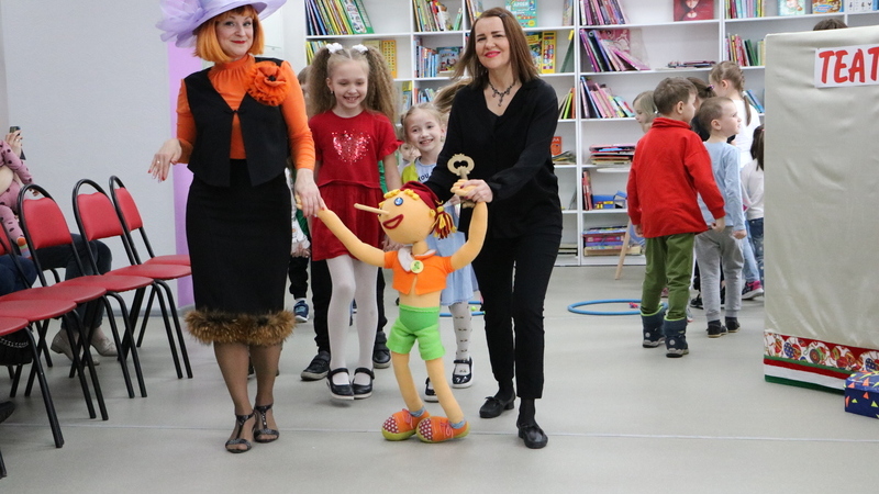 Началось мероприятие с поздравления и рассказа об истории возникновения «книжкиных именин», также ребята познакомились с детскими писателями-юбилярами 2023 года. Дети с удовольствием ответили на вопросы библиотекаря о своих любимых книгах, героях, писателях и с интересом послушали историю сказки «Золотой ключик, или Приключения Буратино», которую написал Алексей Николаевич Толстой.