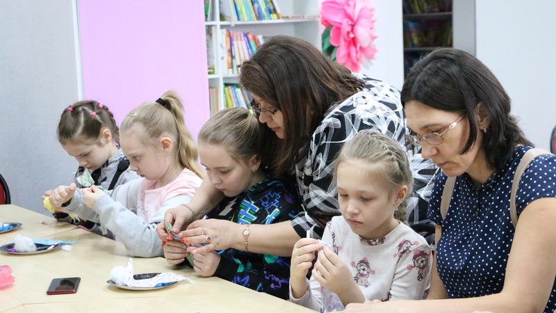 По окончании видеоспектакля по поморской сказке «Птица белое крыло» все присутствующие от мала до велика окунулись в творческий процесс и дружно смастерили куколку на пальчик. Именно эту куколку, сделанную из кусочка ткани материнской одежды, надевали младенцу на пальчик, когда он находился в люльке – это успокаивало и умиротворяло малыша.