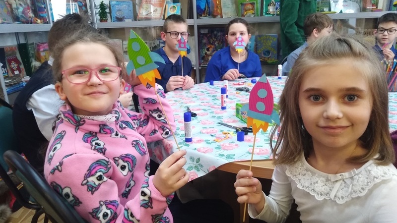 Познавательное мероприятие, посвященное Дню космонавтики, завершилось не менее космическим мастер-классом. Мальчишки и девчонки создали симпатичные радужные ракеты на деревянной шпажке, которые можно использовать как закладки для книг или украсить ими интерьер своей комнаты.