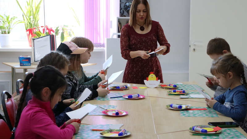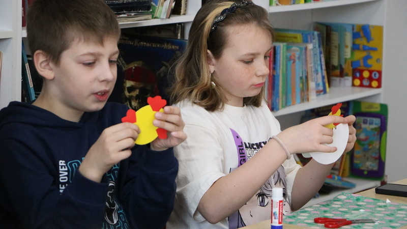 Ребята узнали об истории возникновения праздника, о народных обычаях празднования Пасхи. Участники мастер-класса и сами поделились, как в их семьях готовятся к Пасхе, рассказали, как они помогают своим родителям. А затем юные читатели приступили к изготовлению своих пасхальных шедевров из цветной бумаги и картона. Поделки ребята выполняли в технике объемной аппликации в виде яичка с забавным цыпленком. Каждый проявил фантазию и мастерство, в результате пасхальные сувениры получились красочными, яркими и неповторимыми.
