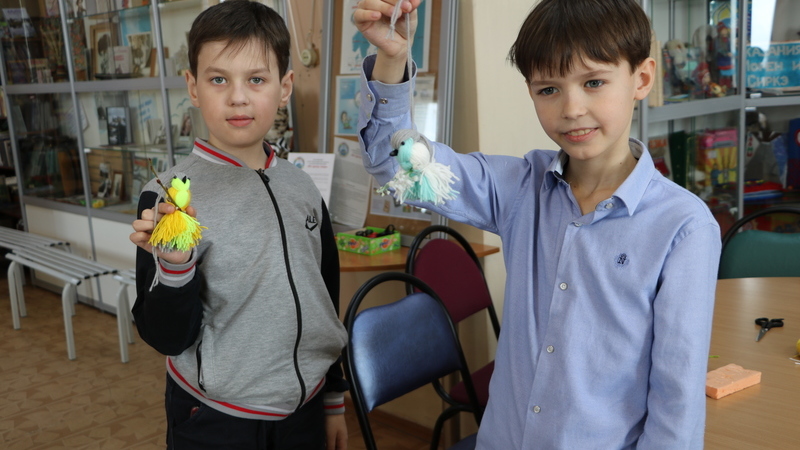 Затем ребята приступили к созданию райских птичек из разноцветной пряжи. Третьеклассники творчески и с энтузиазмом принялись за дело: наматывали нитки на специальную заготовку, закрепляли детали будущей птички, завязывали узелки и, конечно же, помогали друг другу. Птички у ребят получились яркими, мягкими и удивительными!