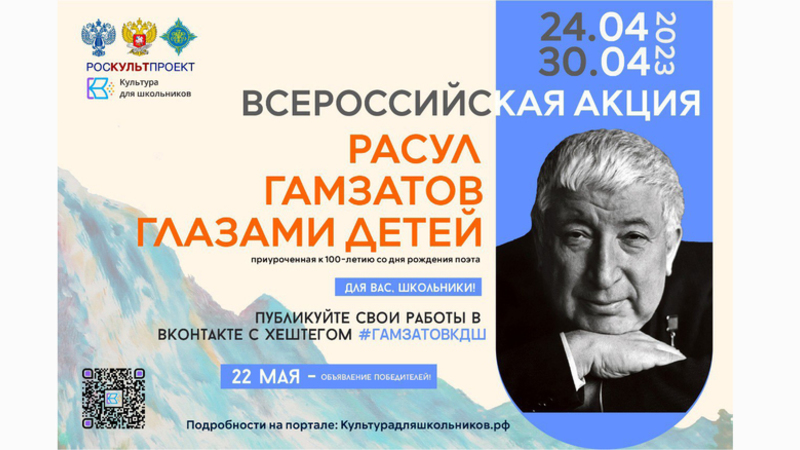 Расул Гамзатов был не только большим поэтом, но и замечательным публицистом, прозаиком, переводчиком. Имя дагестанского поэта связывает народы и поколения нашей страны. К 100-летнему юбилею Расула Гамзатова межведомственный проект «Культура для школьников» презентует Всероссийскую акцию, которая будет проходить в двух направлениях – познавательном и интерактивном.