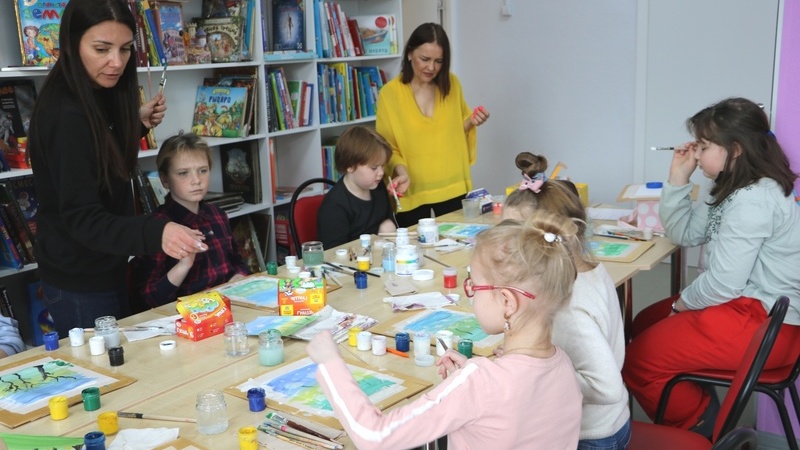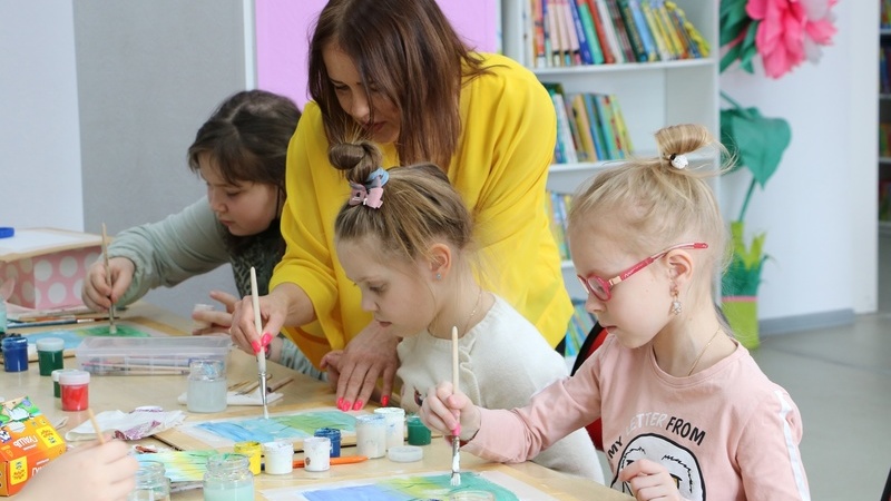 Вчера в мастерской чудес Мэри Поппинс центра чтения «Читай и познавай» юные читатели рисовали весенние цветы в технике правополушарного рисования