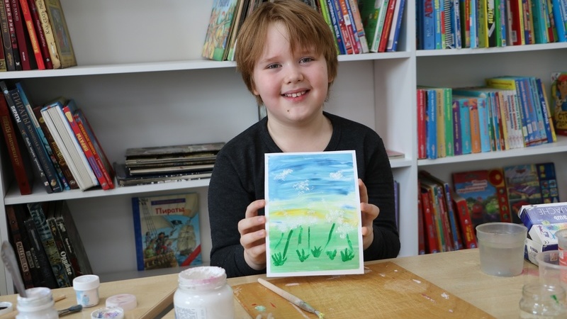 Библиотекарь подробно рассказала и показала все этапы создания картины. Без использования простого карандаша и воды, только с помощью кисти и гуаши ребята создавали прекрасные трепетные первоцветы.