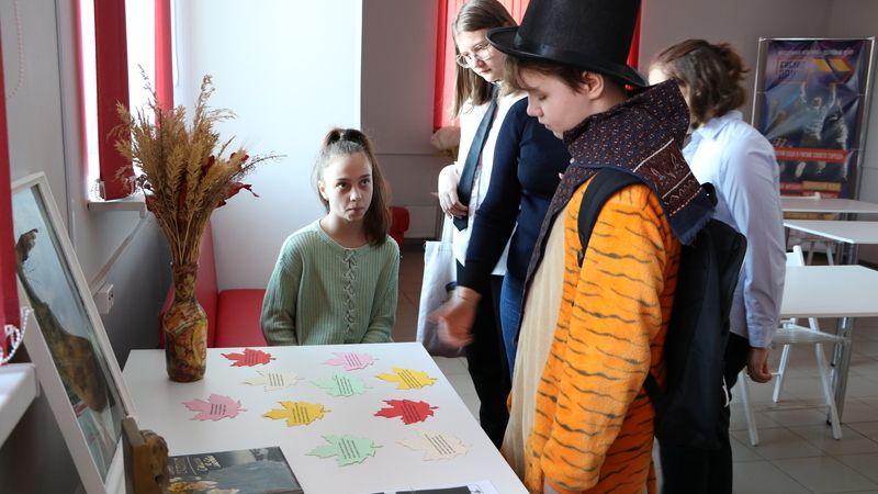 После краткой беседы у музейной экспозиции, посвященной биографии Сергея Есенина, команды шестиклассников получили маршрутные листы и отправились выполнять задания квеста, который состоял из четырех этапов: «Биографический», «Художественный», «Страноведческий», «Литературный».