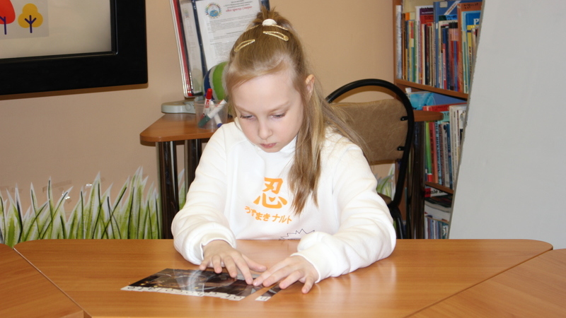 На прошедшем занятии мы, как всегда, задавали вопросы «Как дела?», «Откуда ты?», «Сколько тебе лет?» и отвечали на них. Повторяли цвета и говорили, что может быть розового цвета. А в одном из заданий журнала находили в стоге сена слова и записывали их на доске. Затем вспоминали весенние слова, а в конце, как обычно, пели весеннюю песенку. После занятия собирали пазлы, писали на доске слова, общались и играли.