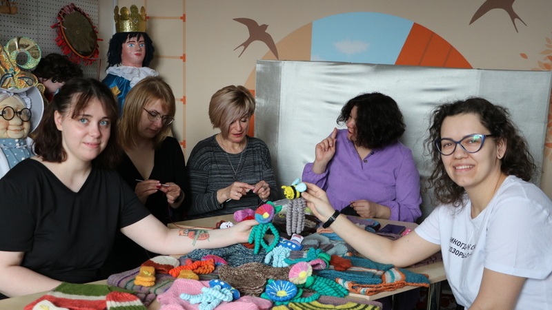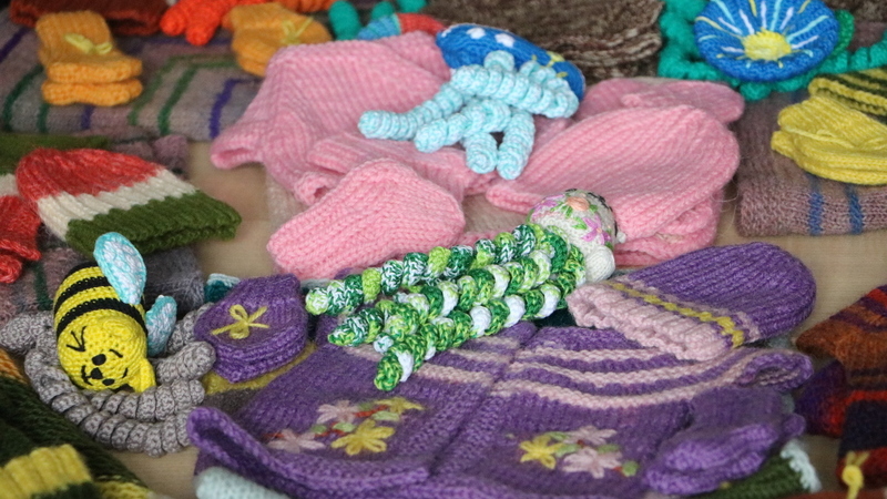 Рукодельницы принесли на встречу связанные теплые пледы, кофточки, носочки и шапочки для малышей-торопыжек, которые будут переданы в Мурманский областной перинатальный центр. Для малышей, которые появились на свет раньше срока, одежда из 100% шерсти оказывается жизненно важной – она необходима для поддержания тепла, для рефлекторного массажа, для стимулирования двигательной активности. Изделия из натуральной пряжи помогают сохранять тепло у недоношенных детей с экстремально низкой массой тела и обладают терапевтическим эффектом. Например, носочки из чистой шерсти нежно покалывают ножки и заставляют малышей двигаться – это важно на этапе выхаживания. Вязаные игрушки-осьминоги с щупальцами-спиральками напоминают крохам пуповину и успокаивают их.