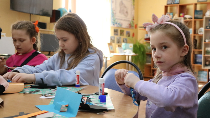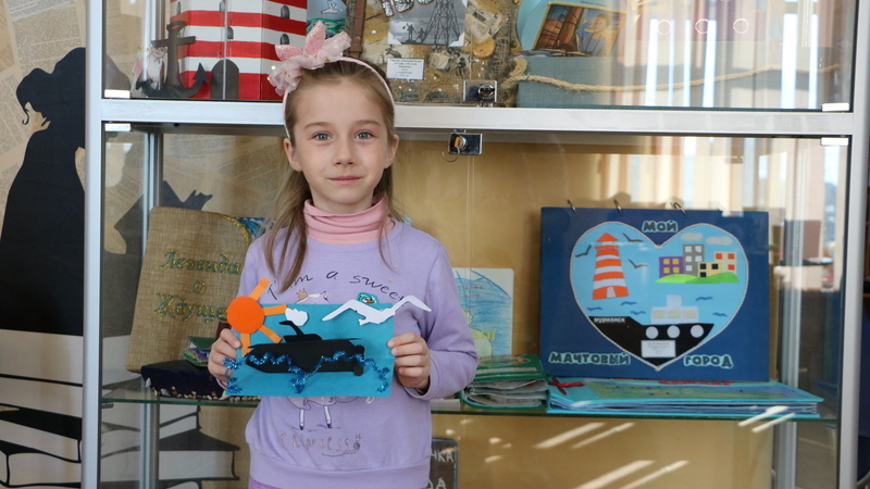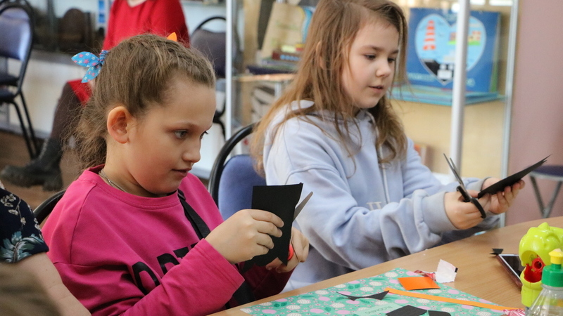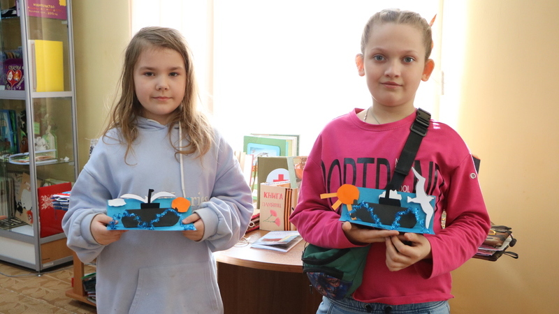На мастер-классе юные читатели из цветного картона и бумаги сделали аппликацию в виде отважной подводной лодки, охраняющей морские просторы.