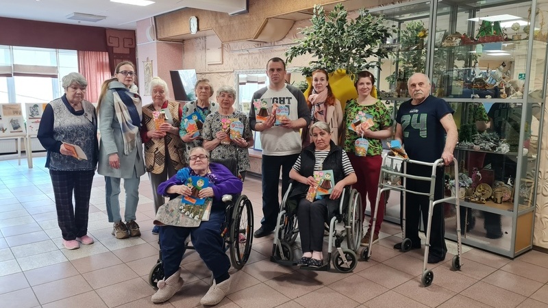 Миссия была очень приятная и почетная – поздравить с Днем Победы «детей войны» и тружеников тыла. Пожилым и людям с инвалидностью были вручены подарки, изготовленные руками волонтеров и именные открытки, подписанные специально для каждого жителя дома-интерната.