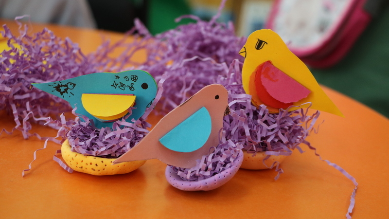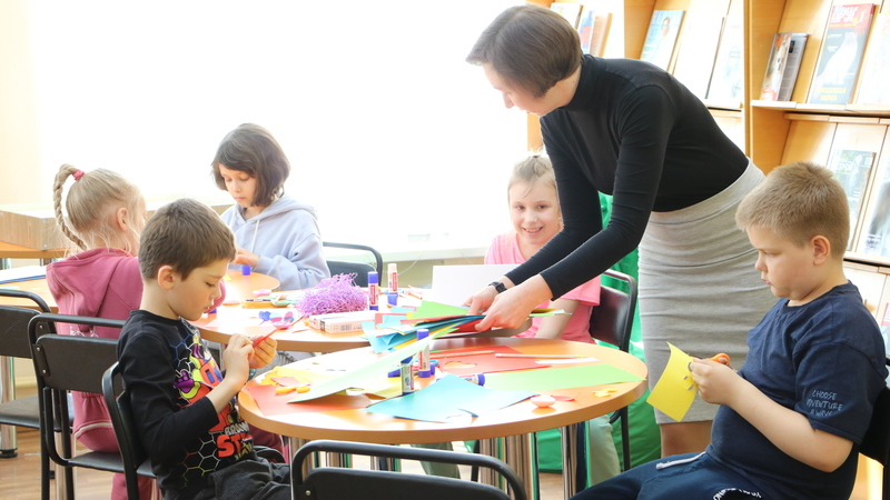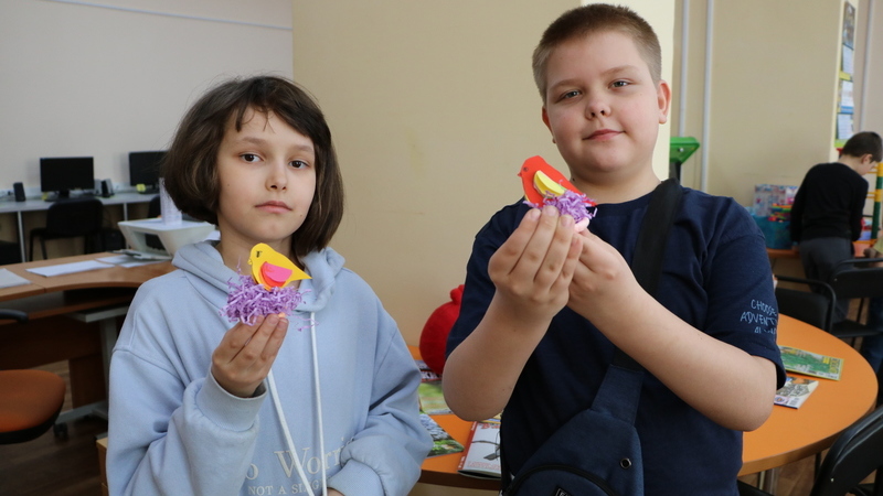 Из цветной бумаги, крафт-наполнителя и заготовок из воздушного пластилина юные гости библиотеки смастерили маленьких птичек и обустроили им мягкие гнездышки. Также на творческом занятии поговорили о том, какие птицы и почему являются перелетными.