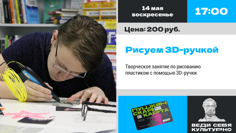 Этот инструмент позволяет создавать различные предметы, фигуры, узоры. Участники мастер-класса под руководством библиотекаря смогут развить творческие способности, мелкую моторику и освоить увлекательное 3D-моделирование. Предоставляется полная свобода художественного самовыражения, где нет границ фантазии. В стоимость мероприятия включены все необходимые материалы. Количество мест ограничено, одновременно могут участвовать не более трех человек.