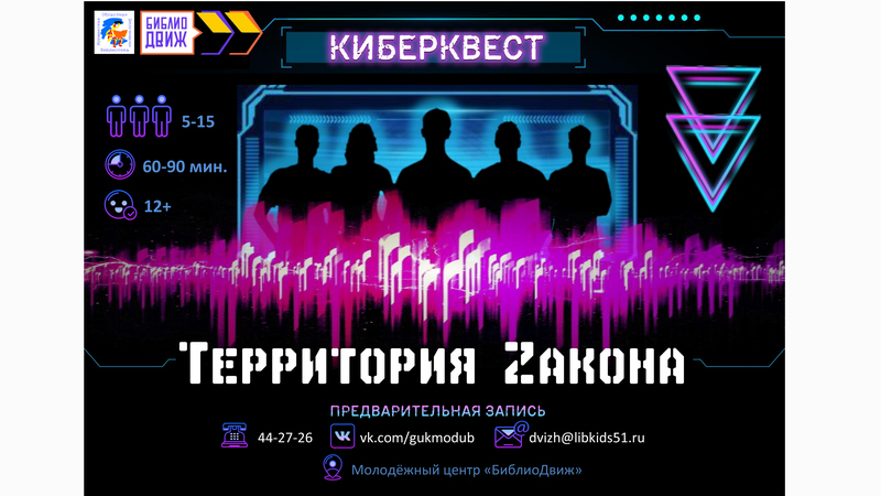 Обязательна предварительная запись по телефону 44-27-26 , в группе в социальной сети «ВКонтакте» или на эл. почту dvizh@libkids51.ru