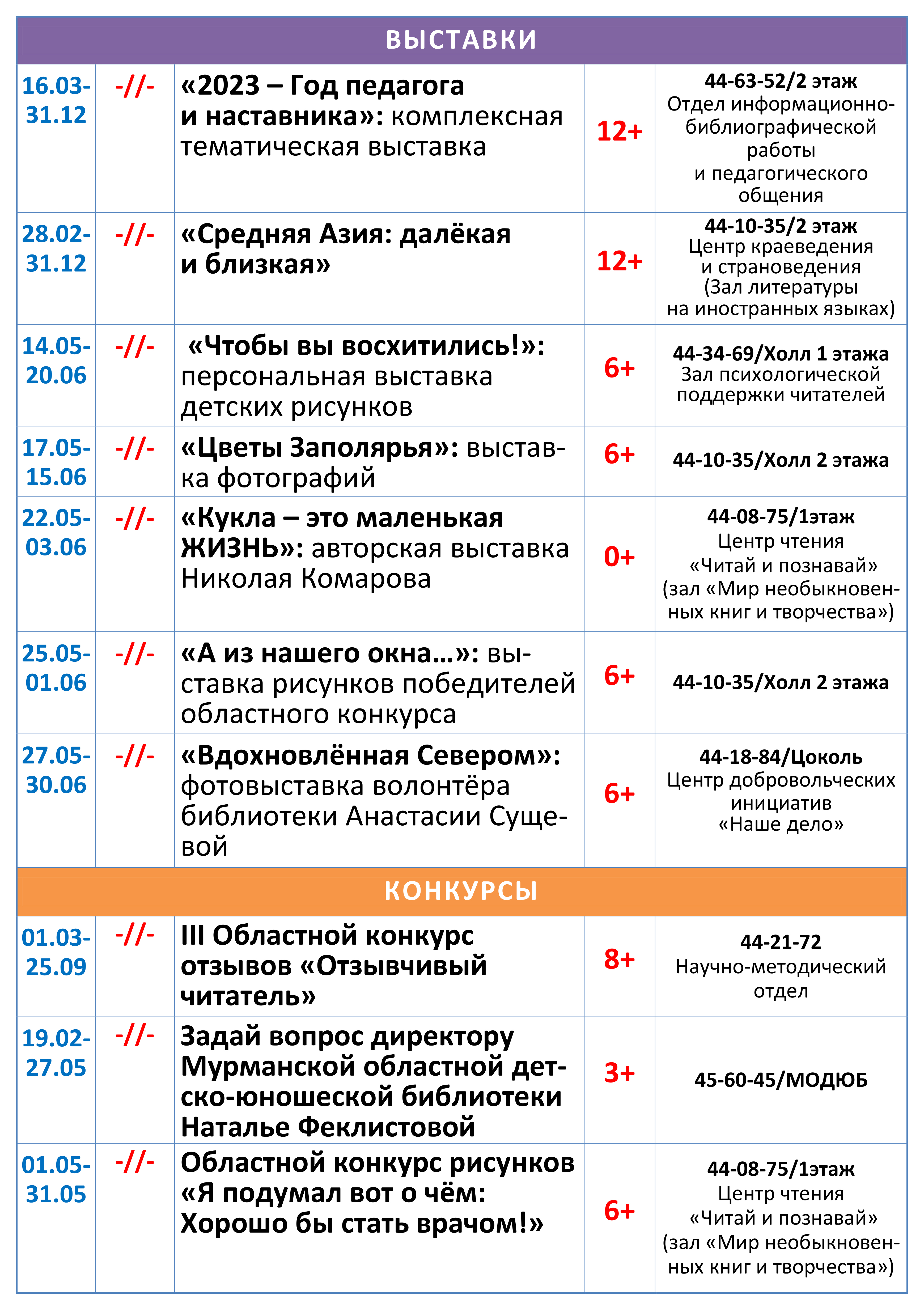 Мурманская областная детско-юношеская библиотека имени В. П. Махаевой приглашает читателей посетить разнообразные творческие занятия и выставки, поиграть в настольные игры и познакомиться с новинками периодики.