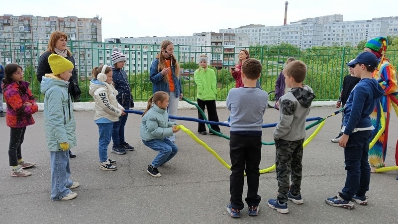 Гости с радостью помогли Скомороху раскрасить мир и насытить его разноцветными лучиками добра и позитива. Дети танцевали под любимые песни, отгадывали каверзные загадки, плели гигантские косы на скорость и делились зарядом энергии.