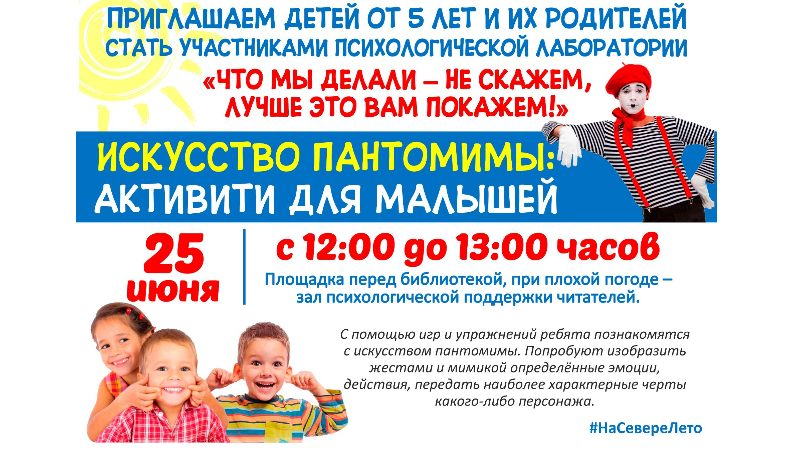 25 июня в 12:00 приглашаем детей от 5 лет и их родителей стать участниками психологической лаборатории «Что мы делали – не скажем, лучше это вам покажем!»