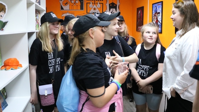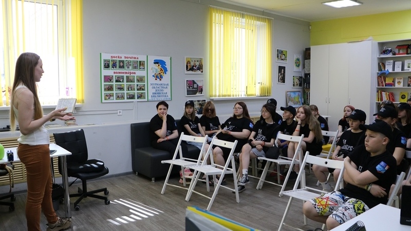 Это уже шестая смена, на которую приехали школьники из г. Мурманска, Оленегорска, ЗАТО Александровск. В среду у ребят была экскурсионная программа в столицу Заполярья с посещением библиотеки. Знакомство началось на Алее писателей, где им рассказали о писателях и поэтах, чьи бюсты установлены перед зданием. Затем отряды разошлись по разным локациям. Юные патриоты посетили музей Рукописной книги, где с большим интересом рассматривали рукотворные работы, выполненные в разных техниках. Молодежный центр "БиблиоДвиж" познакомил ребят с возможностями и направлениями работы залов «Территория Z», «Нон-фикшн», «Лит-Up», комнаты комиксов. Сотрудники Центра добровольческих инициатив «НАШЕдело» рассказали о волонтерском движении в библиотеке. Также ребята посетили музей Сергея Есенина, где познакомились с экспозициями и коллекциями, узнали историю его создания.
