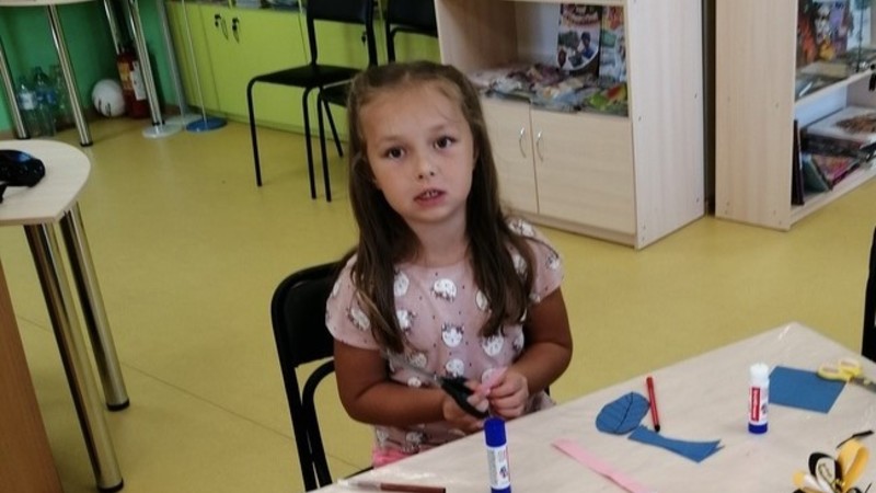 Из цветной бумаги с помощью ножниц и клея юные мастера создали забавное насекомое, приклеили усики из синельной проволоки и посалили его на импровизированный цветок. Смотрите, что у нас получилось!