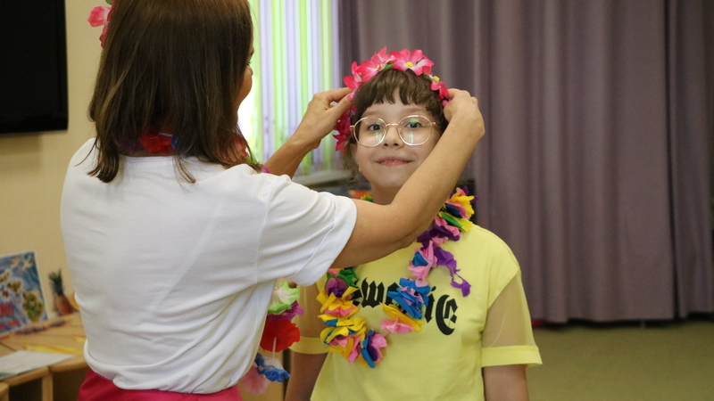 Прибыв на воображаемый остров, юные путешественники выбрали гавайского короля и королеву, участвуя в подвижной игре «Гавайский король». В эстафетах «Собери ананасы» и «Музыкальный кокос» дети смогли проявить свою ловкость и находчивость. Затем ребята отправились на солнечный пляж, где их ждала рыбная ловля и соревнование по сбору крабов.