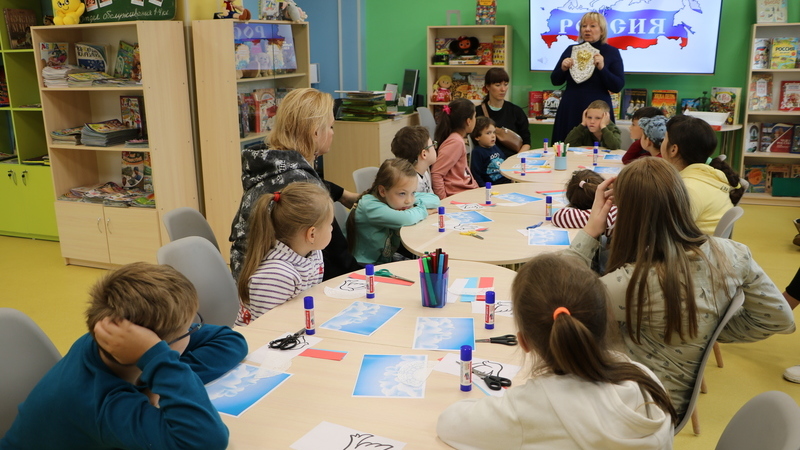 Лариса Николаевна, сотрудник отдела детского чтения, рассказала об истории создания российского флага, о том, когда впервые был поднят бело-сине-красный стяг и что означают эти три цвета. Ребята узнали о том, что в каждой стране существует триединство символов: герб, флаг, гимн. А также историю возникновения и утверждения флага, как одного из символов государства российского и о том, что первые пятьсот лет своей истории в России роль флага исполняла чудотворная икона, с которой шли в бой княжеские дружины. Такую икону берегли как зеницу ока.