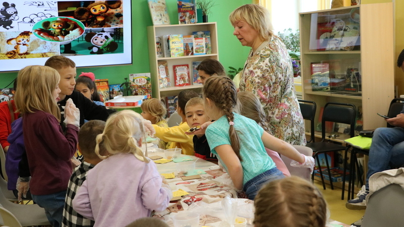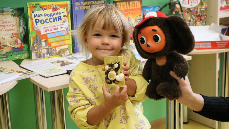 Потом под веселую песню Крокодила Гены юные читатели отправилась в гости к Чебурашке со сладкими подарками, сделанными своими руками из шоколада, сухофруктов и меда. Ведь у него сегодня ДЕНЬ РОЖДЕНИЯ!