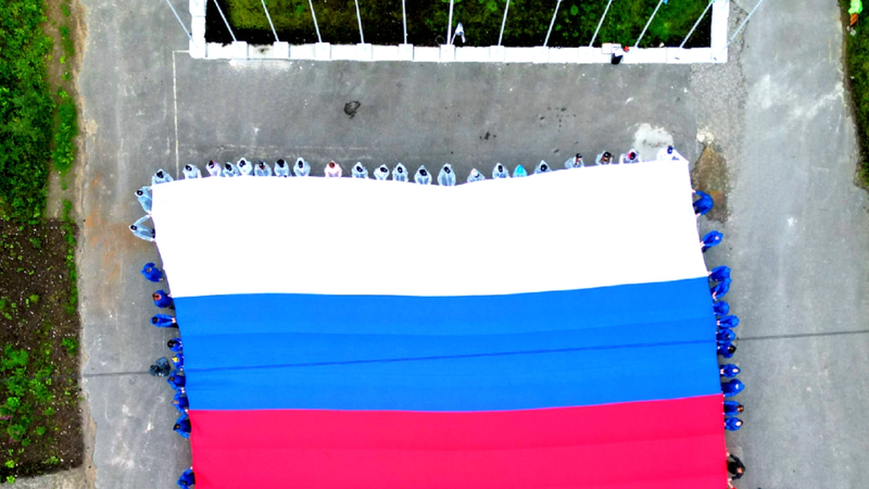 Помимо мероприятия об Арктике библиотекарь вместе с детьми развернули огромный триколор в честь Дня Государственного флага Российской Федерации.