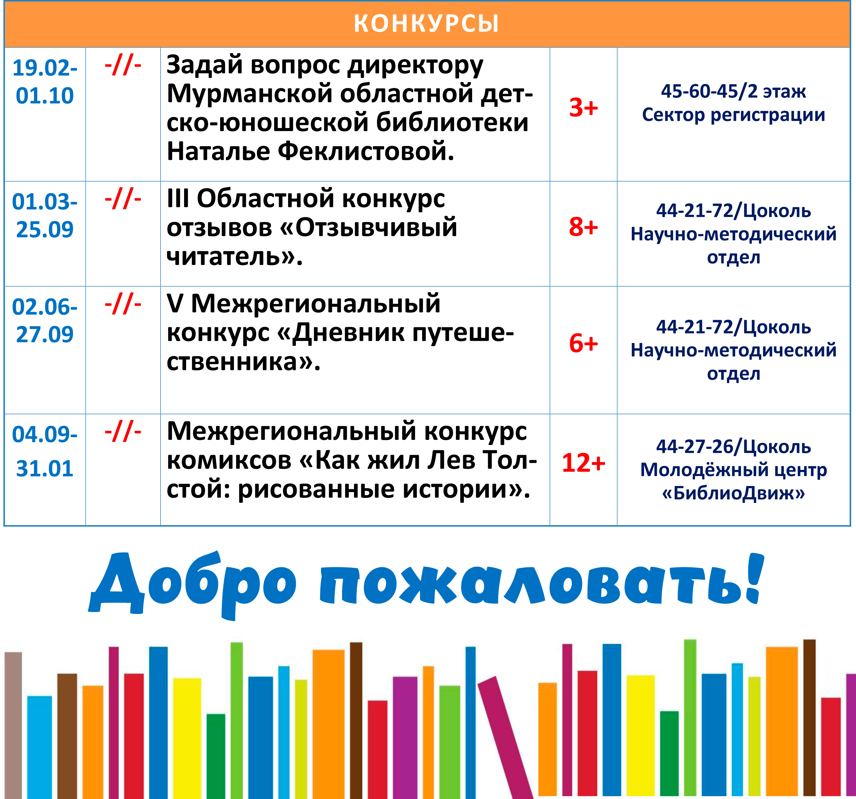 Мурманская областная детско-юношеская библиотека имени В. П. Махаевой приглашает читателей посетить интерактивные, познавательные и творческие занятия, выставки, музеи, кружок по скоростной сборке кубика Рубика, принять участие в разнообразных играх, увлекательных мастер-классах, конкурсах.